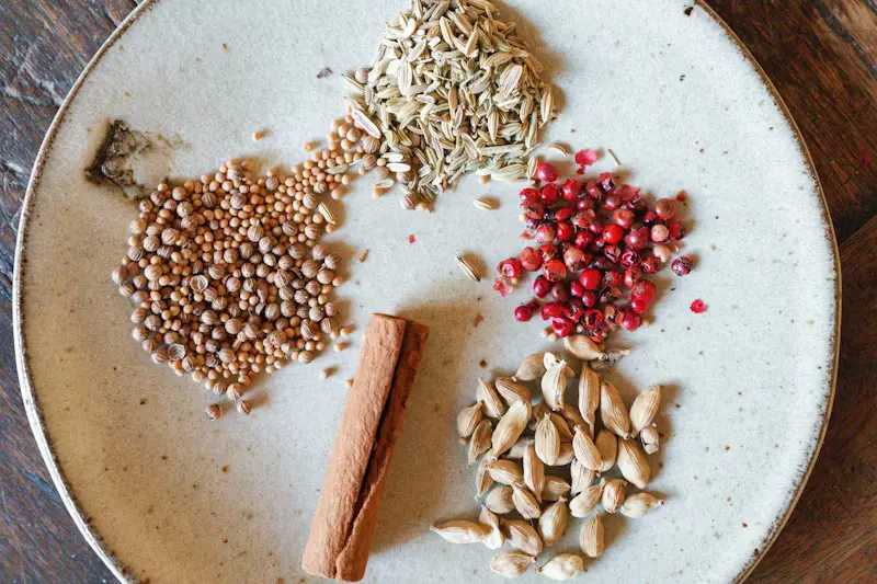 Spices: Mild, calming spices like ginger, cardamom, cinnamon, fennel, coriander, and turmeric.